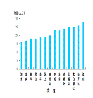 二氧化硫浓度最好的县(市、区)是泗水县,为16微克/立方米;最差的县(市、区)是微山县,为28微克/立方米;同比改善幅度最大的县(市、区)是泗水县,为55.6%,同比改善幅度最小的县(市、区)是梁山县,为25.0%。
