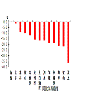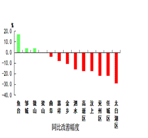 细颗粒物浓度最好的县(市、区)是曲阜市,为42微克/立方米;最差的县(市、区)是汶上县,为63微克/立方米;同比改善幅度最大的县(市、区)是金乡县,为19.4%,同比恶化幅度最大的县(市、区)是汶上县,为46.5%。