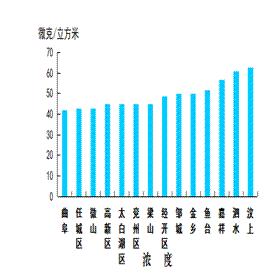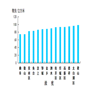 可吸入颗粒物浓度最好的县(市、区)是曲阜市和微山县,均为75微克/立方米;最差的县(市、区)是梁山县,为99微克/立方米;同比均恶化,恶化幅度最小的县(市、区)是鱼台县,为3.7%,恶化幅度最大的县(市、区)是汶上县,为58.2%。