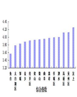 环境空气质量综合指数最好的县(市、区)是鱼台县,为3.57,最差的县(市、区)是汶上县,为4.26;同比改善幅度最大的县(市、区)是太白湖区,为17.4%,同比恶化幅度最大的县(市、区)是金乡县,为3.0%。