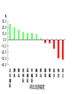 二氧化硫浓度最好的县(市、区)是曲阜市,为9微克/立方米;最差的县(市、区)是太白湖区,为21微克/立方米;同比改善幅度最大的县(市、区)是鱼台县,为54.5%,同比改善幅度最小的县(市、区)是金乡县,为25.0%。