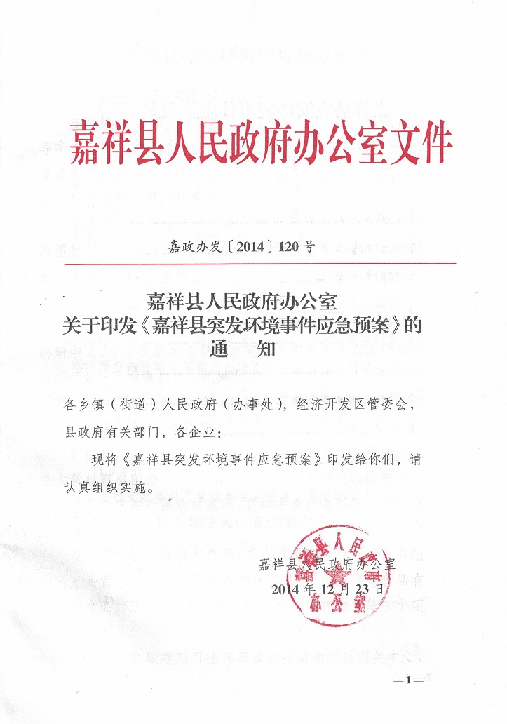 嘉祥县突发环境事件应急预案